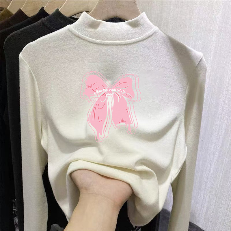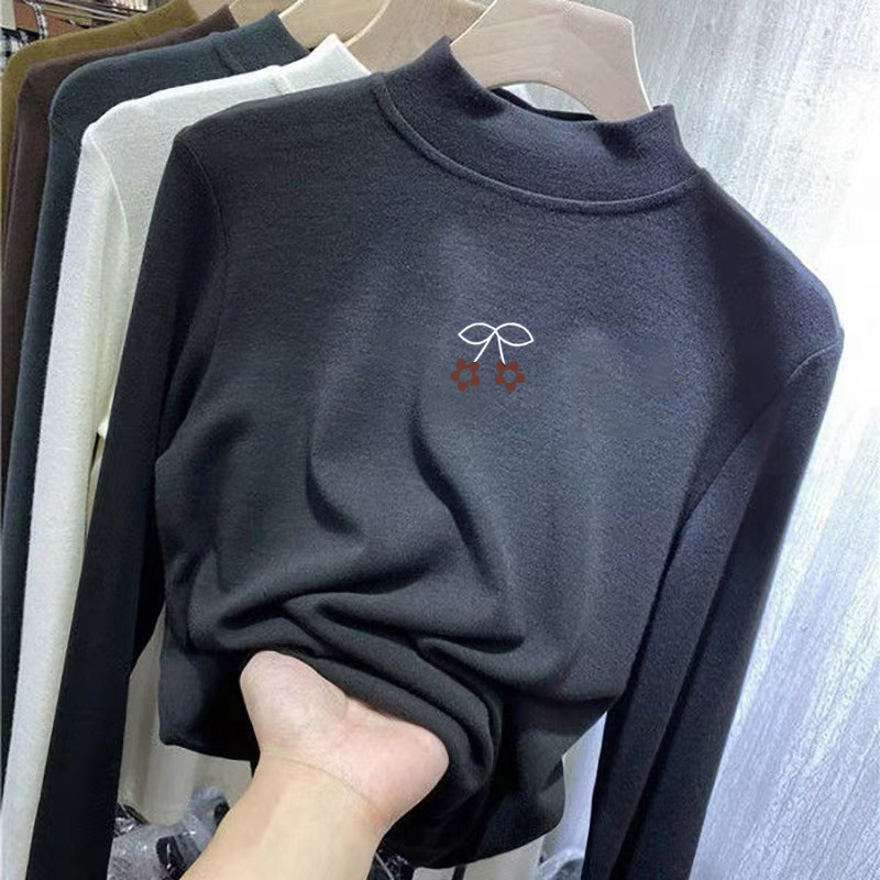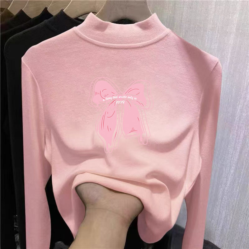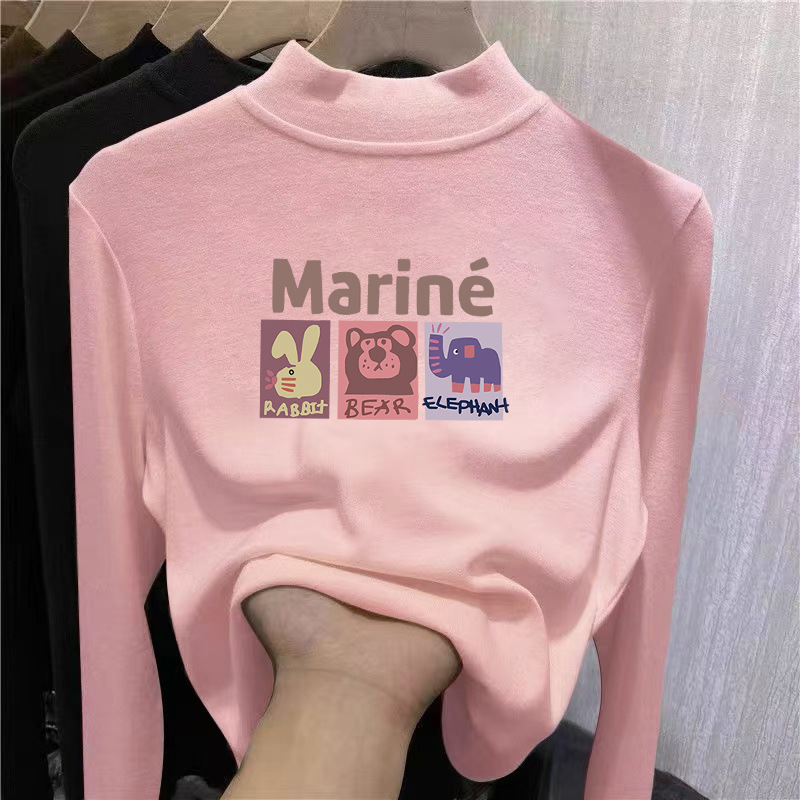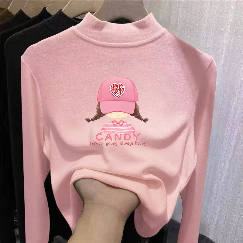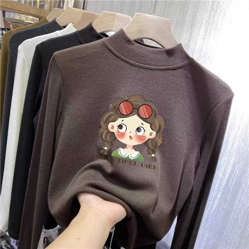 Girls' Thermal Long-Sleeve Base Shirt, New Autumn and Winter Children's Half-High Collar Top, Thickened and Warm Inner Layer, Stylish T-Shirt