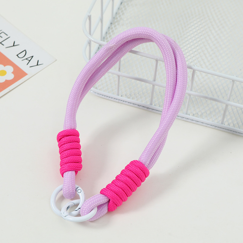 Hand-Woven Short Nylon Lanyard Anti-Lost Color-Blocked Keychain Fashionable Dopamine Plush Doll Clip